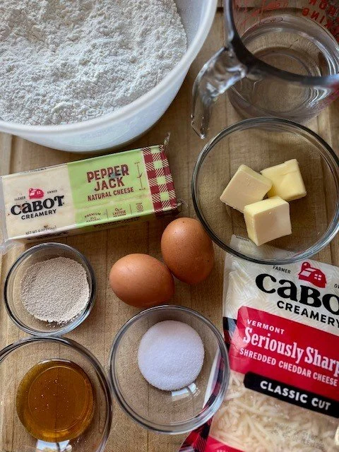I don’t know about you, but I need some serious comfort foods during these long cold winter months. This spicy, cheesy pull-apart (“monkey”) bread truly hits the spot and is an all-around crowd pleaser! Perfect for a snowy weekend at home, or to bring over for game night! Get yourself some spicy Cabot Creamery pepper jack, some sharp cheddar, and you’ll be on your way to cheesy bread heaven.